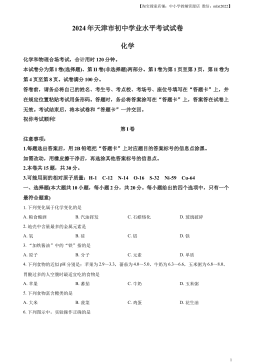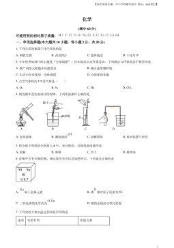 【淘宝搜索店铺:中小学教辅资源店微信:mlxt2022】[机密]2024年6月12日16:30前重庆市2024年初中学业水平暨高中招生考试化学试题(B卷)(全卷共四个大题,满分70分,与物理共用120分钟)注意事项:1.试题的答案书写在答题卡上,不得在试题卷上直接作答。2.作答前认真阅读答题卡上注意事项。3.考试结束,由监考人员将试题卷和答题卡一并收回。可能用到的相对原子质量:H1C12O16S32Ca40Fe56Cu64一、选择题(本大题包括16个小题,每小题2分,共32分)每小题只有一个选项符合题意1.制作豆腐的下列过程中,一定发生了化学变化的是A.挑选黄豆B.研磨制浆C.过滤豆渣D.燃火...