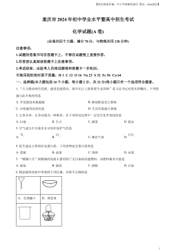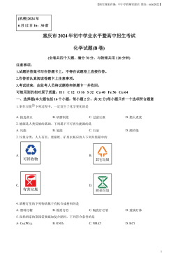 精品解析:2024年重庆市中考化学真题(B卷)(原卷版)