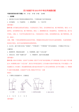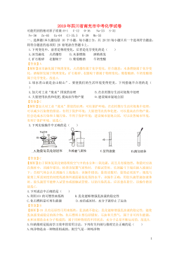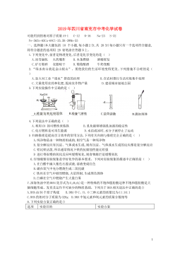 2019年四川省南充市中考化学试卷可能用到的相对原子质量:H-1C-120-16Na-23S-32Fe-56Zn-65Cu-64Cl-35.5K-39Mn-55一、选择题(本大题包括10个小题,每小题2分,共20分)每小题只有一个选项符合题意,将符合题意的选项用2B铅笔涂在答题卡上。1.下列变化中,前者是物理变化,后者是化学变化的是)A.冰雪融化火药爆炸B.木条燃烧酒精挥发C.矿石粉碎衣服晾干D.葡萄酿酒牛奶变酸2.“绿水青山就是金山银山”。要使我们的生活环境变得更美,下列措施不合理的是()A.加大对工业“废水”排放的治理B.在农村推行生活垃圾集中处理C.大量使用农药和化肥,提高农作物产量D....
