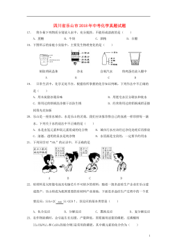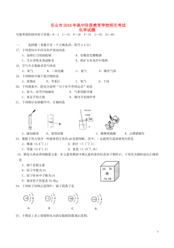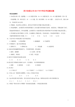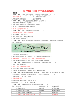 绵阳市2016年初中学业水平考试暨高中阶段学校招生考试科学(化学部分)可能用到的相对原子质量:H—1C—12O—16S—32Na—23Fe—56Cu—64Zn—651.化学在能源利用、环境保护等方面起着重要作用。下列有关做法不正确的是A.将地沟油转化为航空油,变废为宝B.使用新型的可降解塑料,减少白色污染C.改进汽车尾气净化技术,减少有害气体排放D.加高化工厂的烟囱排放废气,防止形成酸雨2.化学在生活中无处不在。下列选项与化学变化有关的是A.削皮的苹果在空气中放置一段时间后变色B.用镶有金刚石的玻璃刀裁玻璃C.用闻气味的方法区分食醋和酱油D.向生锈铁锁的钥匙孔中加入铅笔芯粉末,使铁锁更容易打开...