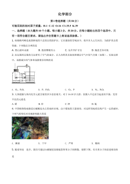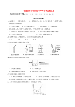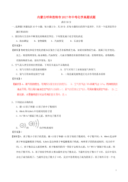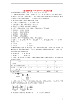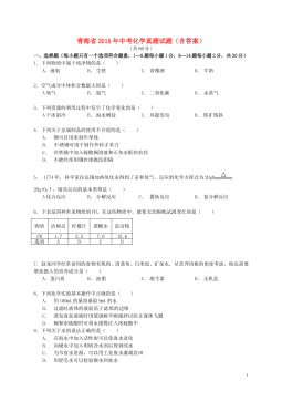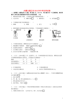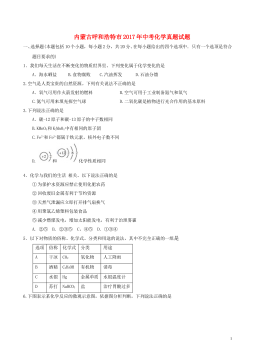 2015年呼和浩特市中考化学试卷化学部分(满分50分)可能用到的相对原子质量:H-1C-12N-14O-16Na-23Mg-24S-32Fe-56Zn-65一、选择题(本题包括10小题,每小题2分,共20分。在每小题给出的四个选项中,只有一个选项是符合题目要求的)1.下列操作中,能鉴别空气、氧气和氢气三瓶气体的是A.插入燃着的木条 B.观察气体颜色C.闻气体的气味 D.倒入澄清石灰水2.下列物质的用途是由其物理性质决定的是A.乙醇可作燃料B.氧气用于炼钢C.金刚石用来裁玻璃D.氯化钠用来制纯碱3.对于下列几种化学符号,有关说法正确的是①H②Fe2+③Cu④P2O5⑤Fe3+⑥Na...