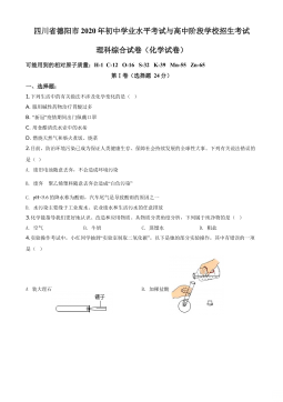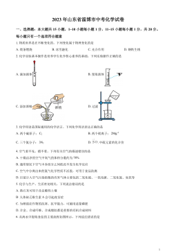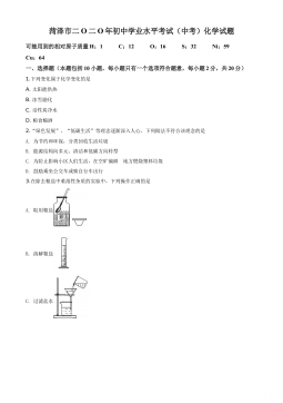 精品解析:山东省滨州市2020年中考化学试题(原卷版)