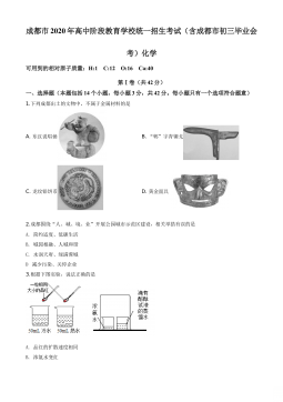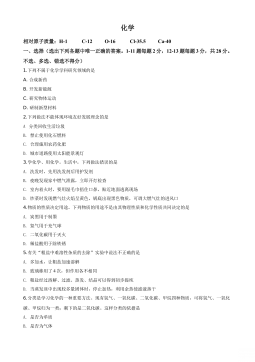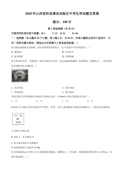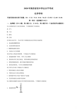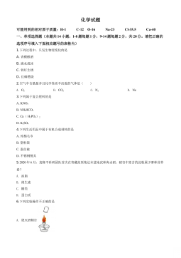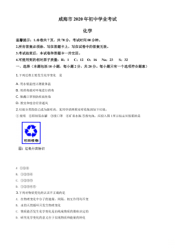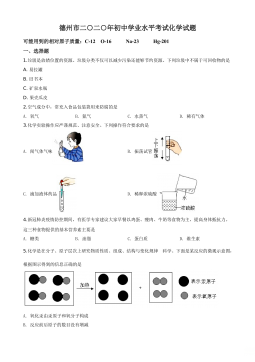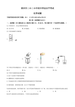 滨州市二O二O年初中学业水平考试化学试题可能用到的相对原子质量:H-1C-12N-14O-16Na-23S-32第I卷(选择题共48分)一、选择题(本大题包括16小题,每小题3分,共48分。每小题只有一个选项符合题意。)1.下列变化中,仅包含物理变化的是A.光合作用B.冰雪融化C.煤炭燃烧D.葡萄酿酒2.下列实验操作正确的是A.B.C.D.3.下列化学用语既能表示一种元素,又能表示一个原子,还能表示一种物质的是( )A.OB.CuC.N2D.CO24.下列有关溶液的说法错误的是A.泥土与水混合不能形成溶液B.硝酸铵溶于水能使水温降低C.升高温度可使大多数固体物质的饱和溶液变为不饱和溶液D.饱...