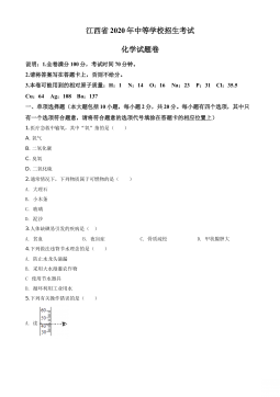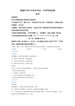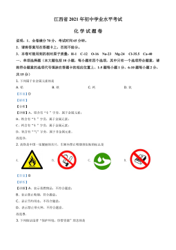 2022年广州市初中学业水平考试化学可能用到的相对原子质量:H-1C-12N-14O-16Na-23Cl-35.5K-39Ca-40Ag-108一、选择题:本题包括14小题,每小题3分,共42分。每小题给出的四个选项中,只有一项最符合题意。错选、不选、多选或涂改不清的,均不给分。1.化学变化创造物质。下列物品的材质属于有机合成材料的是A.广汉三星堆出土的青铜纵目面具B.长沙马王堆出土的蚕丝素纱单衣C.“文房四宝”笔墨纸砚中的宣纸D.“冰墩墩”的聚碳酸酯塑料外壳2.运动员在剧烈运动、大量出汗之后,饮用运动饮料主要补充的是A.蛋白质B.油脂C.纤维素D.无机盐3.在劳动实践和化学实验中要保证安全,...