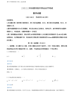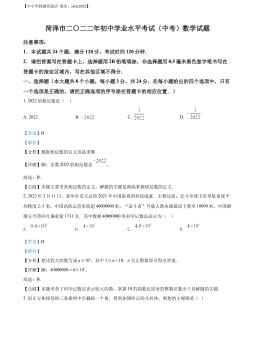 精品解析:2022年山东省淄博市中考数学真题(解析版)