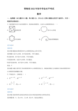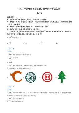 扬州市2022年初中毕业、升学统一考试数学试题一、选择题:本题共8小题,每小题3分,共24分.在每小题给出的四个选项中,只有一项是符合题目要求的.1.-2的相反数是()A.2B.-2C.±2D.-【答案】A【解析】【分析】根据相反数的定义直接解答即可.【详解】解:-2的相反数是2.故选:A.【点睛】本题考查相反数,相反数的定义是:如果两个数只有符号不同,我们称其中一个数为另一个数的相反数,特别地,0的相反数还是0.2.在平面直角坐标系中,点P(3﹣,a2+1)所在的象限是()A.第一象限B.第二象限C.第三象限D.第四象限【答案】B【解析】【详解】∵a2⩾0,∴a2+1⩾1,∴点P(−3,a2...