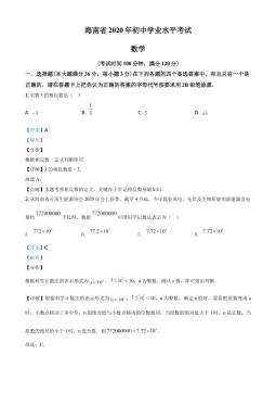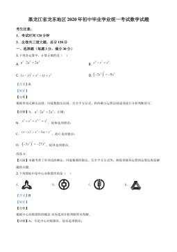 精品解析:黑龙江省哈尔滨市2020年中考数学试题(解析版)