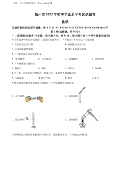 2022年广西北部湾经济区初中学业水平考试化学可能用到的相对原子质量:H-1C-12O-16Mg-24Al-27S-32Cl-35.5Cu-64Ba-137第I卷(选择题共40分)一、选择题(本大题共20小题,每小题2分,共40分。每小题有四个选项,其中只有一个选项符合题意,请用2B铅笔在答题卡上将选定的选项标号涂黑)1.下列物质不属于空气污染物的是A.N2B.COC.NO2D.可吸入颗粒物2.下图所示的图标表示A.禁止烟火B.禁止燃放鞭炮C.禁止吸烟D.禁止堆放易燃物3.下列化肥中,属于磷肥的是A.NaNO3B.K2SO4C.CO(NH2)2D.Ca(H2PO4)24.化学元素与人体健康紧密...