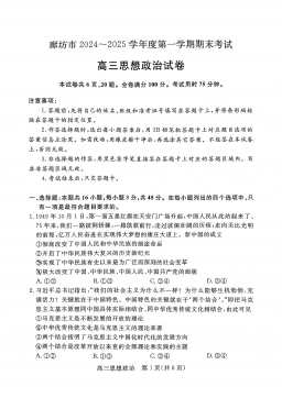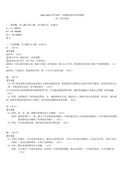 2024—2025年辛集市高三地理上学期期末考试卷参考答案1.B2.A3.C4.B5.D6.A7.C8.A9.C10.A11.A12.D13.A14.A15.B16.C17.(14分)(1)位于海南岛的东(东北)部;(2分)作图如下:(2分)(2)正值北半球夏秋季节(9月),海水温度高,为台风提供了丰富的能量;强烈的蒸发,为台风提供大量水汽;经过广阔的洋面,受外界影响小,利于台风稳定发展,使其能够在短时间内迅速增强。(6分)(3)台风过境时中心气压低,使得人体内外气压差变大,呼吸与正常时候比会更困难。在我国一些海拔较高的高山、高原区也可能有此感觉,如青藏高原。(4分)18.(20分)(1)该海...