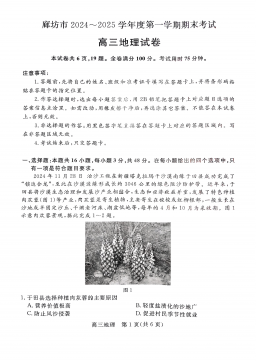 河北省石家庄市辛集市2025届高三上学期1月期末地理答案