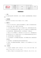 文件编号性质重要版本/版次A/0等级一般制定日期生效日期页数1/6跟进情况考勤管理规定一、目的:为了加强劳动纪律和工作秩序管理,为员工工资核算、休息休假提供依据,特制定本规定。二、适用范围:本规定适用于公司全体员工及公司下属各分/子公司、办事处。三、职责分工:1.各分子公司/部门负责人:确定部门内部考勤统计人;按照人力行政部要求对部门人员出勤(加班、休息、休假等)核实及审批;2.人力行政部人事专员:负责总部员工打卡的监督、统计,发现异常情况及时汇报;全公司员工日常出勤情况的查核、通报;每个月5日前统计全公司考勤情况并提交人力行政经理审批;考勤资料的存档管理,至少保存最近一年考勤记录。3.各部门...