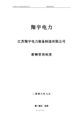 江苏翔宇电力装备制造有限公司薪酬管理制度翔宇电力江苏翔宇电力装备制造有限公司薪酬管理制度二零零六年七月第一部分总则第1页共15页江苏翔宇电力装备制造有限公司薪酬管理制度1.0目的:提供公平的待遇、均等的机会,体现按劳分配、奖勤罚懒、奖优罚劣的原则,促进公司及员工的发展与成长。2.0适用范围:适用于公司所有在职员工。3.0内容:3.1新雇佣的员工,公司通过考查本人的学历、工作经验、工作能力等综合资历和所担任的职务,确定其薪级。试用期结束后,公司将根据其本人的实际表现及试用期考核,决定是否调整其薪级。并且在员工劳动合同有效期内,公司有权根据员工的工作表现情况随时调整(高、低)员工的薪级。3.2根据...