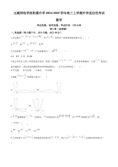 玉溪师范学院附属中学2024-2025学年高三上学期开学适应性考试数学考试范围:高考范围;考试时间:120分钟第I卷(选择题)一单选题(每小题、5分,共8小题,共计40分)1.已知集合,若,则所有的取值构成的集合为()A.B.C.D.2.已知复数(为虚数单位),则()A.8B.9C.10D.1003.某公司对员工的工作绩效进行评估,得到一组数据,后来复查数据时,又将重复记录在数据中,则这组新的数据和原来的数据相,一定不会改变的是()A.平均数B.中位数C.极差D.众数4.函数的图象大致为()A.B.C.D.5.是抛物线上的两点,为坐标原点.若,且的面积为,则()A.B.C.D.6.已知向量以为...