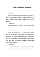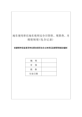 场车使用单位场车使用安全日管控、周排查、月调度制度(包含记录)依据特种设备使用单位落实使用安全主体责任监督管理规定编制编制审核批准生效日期修订记录NO日期修订摘要页次版次变更登录者场辆使用单位场车使用安全日管控、周排查、月调度制度1目的为落实企业使用特种设备安全主体责任,切实履行场车安全风险自查要求,加强场车使用安全风险防控的动态管理,根据《中华人民共和国特种设备安全法》、《特种设备安全监察条例》、《特种设备使用单位落实使用安全主体责任监督管理规定》等法律法规及部门规章,制定本管理制度。2范围适用于本公司。3职责3.1、文控部门负责场车安全风险日管控、周排查、月调度工作制度文件的编制、修改及更...