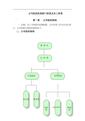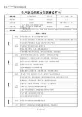 **工作说明书编号**-0001发布日期单位名称**岗位名称总经理直接上级部门直接下级行政人事部经理、财务部经理、质量部经理、生产副总、商务副总下级人数5人主要工作职责组织分析公司的战略环境,在公司战略指导下制定经营计划并组织计划的实施,对经营活动的过程和结果负责分享中人网·共建中人网工作内容1战略规划及制度管理1.1遵守《公司法》等国家法律法规的有关规定,主持公司的经营管理工作;1.2组织分析研究公司所处的外部环境和内部条件,监督、指导行政人事部制定公司的战略规划和战略目标;1.3审批、完善公司各项管理制度,保证公司管理体系科学、有效、高速运行;2组织结构及业务流程2.1组织拟订公司内部管理...
