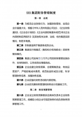 XX集团股份有限公司财务管理制度目录一、XX集团费用开支管理制度……………………………………………………………….1二、XX集团成本开支管理制度…………………………………………………………….…6三、XX集团银行帐户管理制度…………………………………………………………….…12四、XX集团票据管理制度……………………………………………………………….……15五、XX集团发票、收据管理制度……………………………………………………….……17六、XX集团会计档案管理制度……………………………………………………………….20七、XX集团各类财务报告的编制与分析制度………………………………………………...