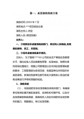 篇一:桌面演练推演方案演练时间:20XX年7月演练地点:***项目部会议室演练主持人:待定演练人员:(附签到表)主持人:一、介绍参加本桌面演练的部门、单位和人员组成,及观摩的领导、员工,并签到。二、介绍本桌面演练基本情况。主持人:为了提高****XX公司安全生产事故应急管理水平,强化应急人员实施事故预警,应急响应,指挥协调和现场处置能力,根据公司管理层以及华润应急管理制度的要求,工程管理部与各项目部、各基层单位共同组织本桌面演练。参演的各家单位都可将此次演练纳入各自的演练成果进行评审和预案的检验。1、演练目的(1)、检验消防安全应急预案及各相关部门、各基层单位现场处置方案的适宜性、实用性和可操...