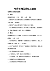电商运营部薪酬管理制度一、2019年度发展目标:截止2019年3月31日前要全面接管并运营邦镇照明、鹏达灯饰、启霸、意普顿等四个旗舰店等4个天猫旗舰店,并实现2019年首年销售产值达1000万元,最高目标1500万。二、事业部岗位编制与职责:1、岗位设置与编制运营总监1名,运营店长2名、推广专员2名,运营助理名4、电商美工2名、文案策划1名,新媒体2名,客服6名(早晚班),总计20名。(美工和客服不用再招),2、岗位职责与考核目标运营总监:负责公司网店整体运营与管理、网店战略决策及网店运营计划监控的网店运营管理岗位,其主要职责在于网店战略目标决策及监控,协调运营团队整体工作。运营店长:主负责店...