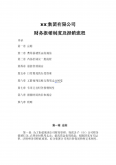 xx集团有限公司财务报销制度及报销流程目录第一章总则第二章费用报销凭证的规范第三章内部控制及一般流程第四章借款管理规定第五章日常费用的分类管理第六章工薪福利及相关费用支出制度第七章专项支出财务报销制度第八章报销时间的具体规定第九章附则第一章总则第一条、为了加强集团公司财务管理,规范各子(分)公司财务报销行为,合理控制费用支出,提高资金使用效益,根据国家有关法律、法规和各项财政政策,结合集团公司的具体情况特制定本制度。 第二条、本制度根据相关的财经制度及集团公司的实际情况,将财务报销分为日常办公费用、工薪福利及相关费用等,以下分别说明报销相关的借款流程及各项支出具体的财务报销制度和报销流程。 ...