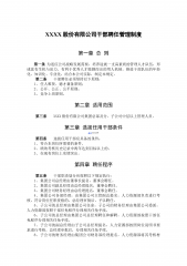 XXXX股份有限公司干部聘任管理制度第一章总则第一条为适应公司战略发展需要,培养造就一支高素质的管理人才队伍,形成富有生机与活力、有利于优秀人才脱颖而出的用人机制,推进干部队伍的年轻化、知识化、专业化,结合本公司实际,制定本规定。第二条干部聘任必须坚持以下原则:1、任人唯贤、德才兼备原则;2、公开、公正、公平原则;3、竞争上岗原则。第二章适用范围第三条XXXX股份有限公司集团总部及分、子公司中层以上管理人员。第三章选拔任用干部条件第四条选拔任用干部应具备的条件:1、符合本岗位所需要的条件。2、绩效考核历史记录中两年达到目标以上的。3、在现有岗位上实绩突出。第四章聘任程序第五条干部职责划分应按照...