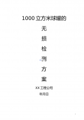 1000立方米球罐的无损检测方案XX工程公司年月日1目次1.工程概况22.编制依据23.无损检测工艺流程24.无损检测35.焊缝返修3附表:无损检测人员登记表46.质量保证措施57.机具安排68.安全措施6附录:无损检测工艺规程7球罐焊缝采用r射线拍片补充说明1321工程概况中国XX化工股份有限公司XXXX分公司化工厂,共建造2台1000m3丙烯球罐,球罐壁厚46mm,材质为16MnR,球罐本体总质量192.3吨/台,该工程由XXXX石油化工设计院设计,中国XXXX建设公司负责该工程的无损检测施工,为保证工程的施工质量和总体进度要求,特编制本无损检测施工技术方案。2编制依据:2.1《1000m...