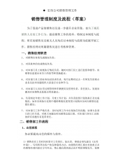 销售人员奖惩办法□奖惩架构(一)奖励:1.小功2.大功(二)惩罚:1.小过2.大过3.解职4.解雇(三)1.全年度累计三小功=一大功2.全年度累计三小过=一大过3.功过相抵:例:一小功抵一小过一大功抵一大过4.全年度累计三大过者解雇5.A.记小功一次加当月考核3分B.记大功一次加当月考核9分C.记小过一次扣当月考核3分D.记大过一次扣当月考核9分□奖励办法(一)1.提供公司“行销新构想”,而为公司采用,即记小功一次。2.该“行销新构想”一年内使公司获利50万元以上者,再记大功一次,年终表扬。(二)1.业务员主动反映可开发的“新产品”而为公司采用,即记小功一次。2.该“新产品”一年内使公司获利5...