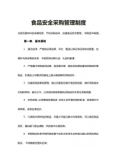 食品安全采购管理制度为规范原材料的采购程序、节约采购成本、加强食品安全管理,特制定本制度。第一条 基本原则1.廉洁自律,严格供应商选择、评价、甑选以保证供应商供货质量,处理好与供应商的关系,不接受供应商礼金、礼品和宴请;2.严格遵守采购规范流程,按流程办事,能及时按质按量地采购到所需物品,在满足公司需求的基础上最大限度降低采购成本;3.加强采购的事前管理,建立完善的设备价格信息档案,做好采购相关文档的存档、备份工作,以有效地控制和降低采购成本并保证采购质量;4.所有采购,必须事前获得批准.未经计划并报审核和批准,除急购外不得采购,或者后果自负;5.凡具有共同特性的物品,尽最大可能以集中办理采购...