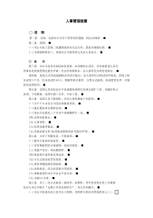 人事作业程序□前言第一条依据本公司办事细则第十九条规定办理。第二条为使本公司人事作业正轨化、制度化,能在有序可循的情况下,使本公司人事统一、脉络一贯,并加强人事部门与各部门间的了解,借以更密切配合,提高工作效率,特制订本程序。□主办第三条人事作业负责单位隶属于管理部(科),设科长一人,承上级之命,负责下列全盘人事业务。(一)依据公司业务需要,研究组织职责及权责划分的改进方案。(二)配合公司经营目标,依据人力分析及人力预测的结果,拟订人力资源发展计划及人员编制数额,并根据人力发展计划,筹划各项教育及训练。(三)设计、推行及改进人事管理制度及其作业流程,并确保其有效实施。(四)经与各单...