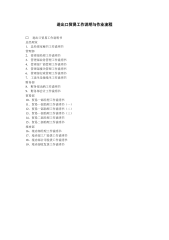 进出口贸易工作说明与作业流程□进出口贸易工作说明书总经理室1.总经理室秘书工作说明书管理部2.管理部经理工作说明书3.管理部业务管理工作说明书4.管理部厂商管理工作说明书5.管理部报关管理工作说明书6.管理部行政管理工作说明书7.工读生及接线生工作说明书财务部8.财务部出纳工作说明书9.财务部会计工作说明书贸易部10.贸易一部经理工作说明书11.贸易一部助理工作说明书(一)12.贸易一部助理工作说明书(二)13.贸易一部助理工作说明书(三)14.贸易二部经理工作说明书15.贸易二部助理工作说明书境内部16.境内部经理工作说明书17.境内部工厂验货工作说明书18.境内部公司验货工作说明书19.境...
