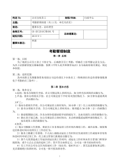 传送TO:公司全体员工制拟FROM:行政中心主题:考勤管理制度(共11页,本页为首页)备送:董事长室、总经理室备案文号:CK-ZD[2018]第001号总经理意见:制拟日期:2018-8-1董事长意见:同意考勤管理制度第一章总则第一条:目的为了规范公司员工的上下班行为,正确指引员工考勤,明确员工的考勤记录及方法,为员工结算薪资提交准确依据,按照《中华人民共和国劳动法》及当地政府相关规定,制定本制度。第二条:适用范围苏州市凯文克莱服饰贸易有限公司总经理以下全体员工(特殊岗位经总经理特别批准免于考勤的员工除外)。第二章基本内容第一条:基本定义1.迟到:指未办理相关手续,在公司规定的上班时间点,30...