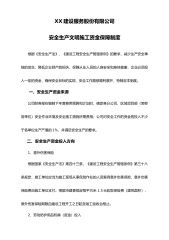 XX建设服务股份有限公司安全生产文明施工资金保障制度根据《安全生产法》、《建设工程安全生产管路条例》的要求,减少生产安全事故的发生,降低企业财产的损失,保障从业人员的人身安全和身体健康,企业必须投入一定的资金,确保安全目标的实现,安全工作能够顺利展开,特制定本制度。一、安全生产资金来源公司财务部在编制下年度费用预算和计划时,确定各分公司、区域项目部(简称各单位)安全作业环境及安全施工措施所需费用;公司对安全工作的资金的投入不少于各单位生产产值的1%,并满足安全生产的要求。二、安全生产资金投入方向1、意外伤害保险根据国家《安全生产法》第四十三条,《建设工程安全生产管路条例》第三十八条规定,施工单...