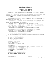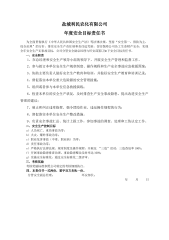 盐城利民农化有限公司年度安全目标责任书为全面贯彻执行《中华人民共和国安全生产法》等法律法规,坚持“安全第一,预防为主,综合治理”的方针,落实安全生产责任制和责任追究制,切实保障公司员工生命财产安全,实现全年安全生产无事故目标,公司车间主任与回收工签订如下安全目标责任书。一、安全职责1、参加安全活动、学习安全技术知识,严格遵守各项规章制度。2、执行交接班制度,接班前必须认真检查本岗位的设备和安全设施及工、器具是否齐全完好。3、遵守纪律,精心操作,严格执行工艺操作规程、安全操作规程。记录清晰、真实、整洁,并保持作业场所清洁。4、按时巡回检查,准确分析、判断和处理生产过程中的异常情况。5、维护保养设...
