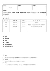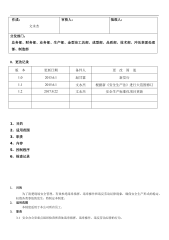 作成:文永杰审核人:批准人:分发部门:总务部、财务部、业务部、生产部、金型治工具部、成型部、品质部、技术部、冲压表面处理部、制造部0.更改记录版本更新日期备件人更改简述1.02013.6.1赵甘霖新发行1.12015.5.8文永杰根据新《安全生产法》进行大范围修订1.22017.9.22文永杰安全生产标准化项目更新1.目的2.范围3.职责4.管理内容和方法5.形成文件和记录1.目的为贯彻“安全第一,预防为主,综合治理”的安全生产方针,确保本公司新建、改建、扩建工程项目的安全,根据国家相关规定特制订本制度。2.范围本规定适用于新建、改建、扩建工程建设项目安全设施“三同时”管理。3.职责3.1安全...