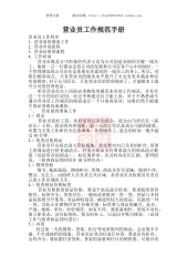 智慧文案淘宝店铺:https://shop553627537.taobao.com营业员工作规范手册营业员工作程序1.营业前的准备工作2.营业中的流程3.营业结束的流程4.工作时间营业员既是公司形象的代表又是为公司创造业绩的关键一线员工,他的一言一行都决定着公司的发展和公司在客户心中的地位。一个管理规范的公司首先是体现在高素质的一线员工的身上。所以,对我们顾客而言,只有营业员的服务水平提升了才会有更多满意和忠实的顾客。对于公司而言,只有营业员的管理规范了,才能根本上提升公司的管理效益。所有营业员在上岗前必须熟练掌握营业员的工作规范,并且经过一个月的岗位试用,经过考核通过后方能上岗,对于不熟悉或...