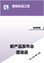 销售团队管理(工具)营销实战工具 促销策略新产品发布会邀请函营销实战工具——促销策略——公共关系拓展营销实战工具——促销策略——公共关系拓展新产品发布会邀请函说明:此新产品发布会邀请函适用于企业进行的新产品发布会活动,一般针对媒体、合作伙伴以及所要邀请的嘉宾对象,突出活动主题、详细议程、参会回执单及相关信息等内容。不过,企业在对待一些特殊的被邀对象,可以适当的调整其中的措辞。尊敬的女士/先生:您好!首先,感谢您一直以来对公司产品的信赖与支持!2012年秋季***公司新产品发布会将于________年_____月____日上午在___________举行,此次发布会将进一步诠释***公司产品的“...