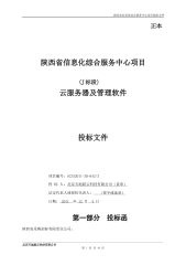 陕西省信息化综合服务中心项目投标文件正本陕西省信息化综合服务中心项目(J标段)云服务器及管理软件投标文件项目编号:SCZA2011-ZB-643/3投标人:北京天地超云科技有限公司(盖章)法定代表人或授权代表人:(签字或盖章)日期:2011年12月4日第一部分投标函陕西省采购招标有限责任公司:北京天地超云科技有限公司第1页共44页陕西省信息化综合服务中心项目投标文件我单位收到贵公司SCZA2011-ZB-643/3招标文件,经详细研究,我们决定参加本次招标活动,并投标。为此,我方郑重声明以下诸点,并负法律责任。1.愿意满足招标文件中的一切要求,提供招标产品及工程技术服务。2.按招标文件的规定,...
