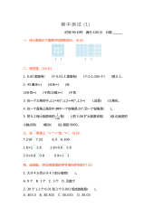 期中测试(1)时间:90分钟 满分:100分 分数: 一、用小数表示下面图中的阴影部分。(6分)二、填空题。(14分)1.0.82里面有( )个0.01;1里面有( )个0.1;100个( )是0.1。2.45厘米=( )分米=( )米328克=( )千克(分数)=( )千克3.在一个三角形中,∠1=65°,∠2=40°,∠3=( ),这是( )三角形。4.在一个直角三角形中,其中一个锐角是20°,另一个锐角是( )。5.把0.2缩小到原来的1100是( );把3.06扩大到原来的( )倍,也就是把小数点向( )移动( )位,得到3060。三、在里填上“>”“<...