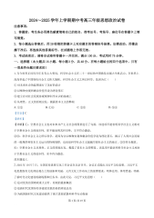 2024~2025学年上学期期中考高三年级思想政治试卷注意事项:1.答题前,考生务必用黑色碳素笔将自己的姓名、准考证号、考场号、座位号在答题卡上填写清楚。2.每小题选出答案后,用2B铅笔把答题卡上对应题目的答案标号涂黑。如需改动,用橡皮擦干净后,再选涂其他答案标号。在试题卷上作答无效。3.考试结束后,请将本试卷和答题卡一并交回。满分100分,考试用时75分钟。一、选择题(本大题共16小题,每小题3分,共48分。在每小题给出的四个选项中,只有一项是符合题目要求的)1.当今世界正经历百年未有之大变局,科学社会主义在二十一世纪的中国焕发出强大生机活力,在世界上高高举起了中国特色社会主义伟大旗帜。科学...