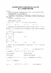 山西省朔州市怀仁市第九中学高中部2024届高三上学期11月期中数学