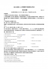 2021级高三上学期期中校际联合考试英语试题2023.11本试卷共四部分,共12页。满分150分。考试时间120分钟。注意事项:1.答卷前,考生务必将自己的姓名、考生号等填写在答题卡上。2.回答选择题时,选出每小题答案后,用铅笔把答题卡上对应题目的答案标号涂黑。如需改动,用橡皮擦干净后,再选涂其它答案标号。回答非选择题时,将答案写在答题卡上,写在本试卷上无效。3.考试结束后,将答题卡交回。第一部分听力(共两节,满分30分)做题时,先将答案标在试卷上,录音内容结束后,你将有两分钟的时间将试卷上的答案转涂到答题卡上。第一节(共5小题;每小题1.5分,满分7.5分)听下面5段对话。每段对话后有一个小...