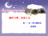 播种习惯,收获人生高一(8)班主题班会赵爱刚猜猜看:我不是你的影子,但我与你亲密无间。我不是机器,但我全心全意听命于你。对成功的人来说,--我是功臣;对失败的人来说,--我是罪人。培训我,--我会为你赢得整个人生;放纵我,--我会毁掉你的终身。我到底是谁?--我平凡得让你惊奇。()习惯什么是习惯?做个小游戏双手十指交叉一握.看看你压在最上面的大拇指是左手大拇指,还是右手大拇指.感觉一下,觉得非常舒服,这就是习惯.什么习惯所谓习惯,就是经过重复练习而巩固下来的思维模式和行为方式。学习习惯,就是在不间断的学习实践中养成的那种自自然表现出来的学习上的习性。我是谁?我是你的终身伴侣,我是你最好的帮手,...