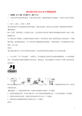 浙江省绍兴市2018年中考科学真(物理部分)真题试题一.选择题1.(2018•绍兴)下列有关家庭电路的说法正确的是( )A.家庭电路中的插座应与用电器串联B.家庭电路的电压对于人体是安全的C.测电笔可以辨别零线与地线D.电能表用来测量用户消耗的电能2.(2018•绍兴)端午节是中华民族传统的节日,很多地方都会举行划龙舟比赛。下列有关说法中正确的是( )A.使龙舟前进的力的施力物体是桨B.以龙舟上的鼓为参照物龙舟是运动的C.龙舟漂浮时所受的浮力小于龙舟的重力D.停止划桨后龙舟还会继续前进是因为龙舟具有惯性3.(2018•绍兴)归纳推理是一种重要的科学思维方法。下列归纳推理正确的是( )A....